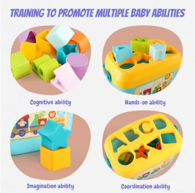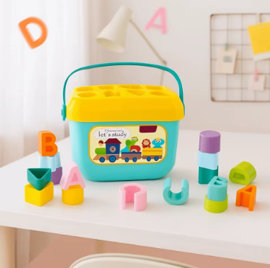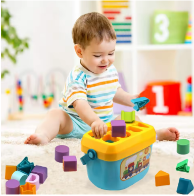Diferentes formas de bloques, que a través de la combinación y clasificación mejoran la coordinación ojo-mano del bebé.